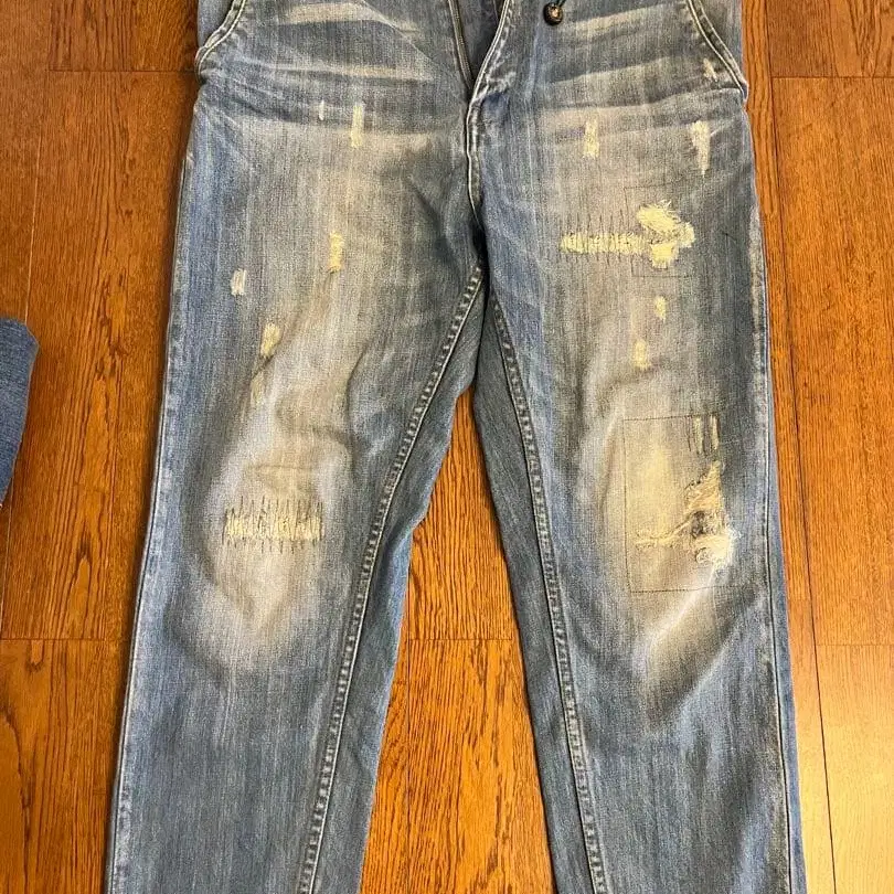 라이트 블루 데미지 데님 팬츠