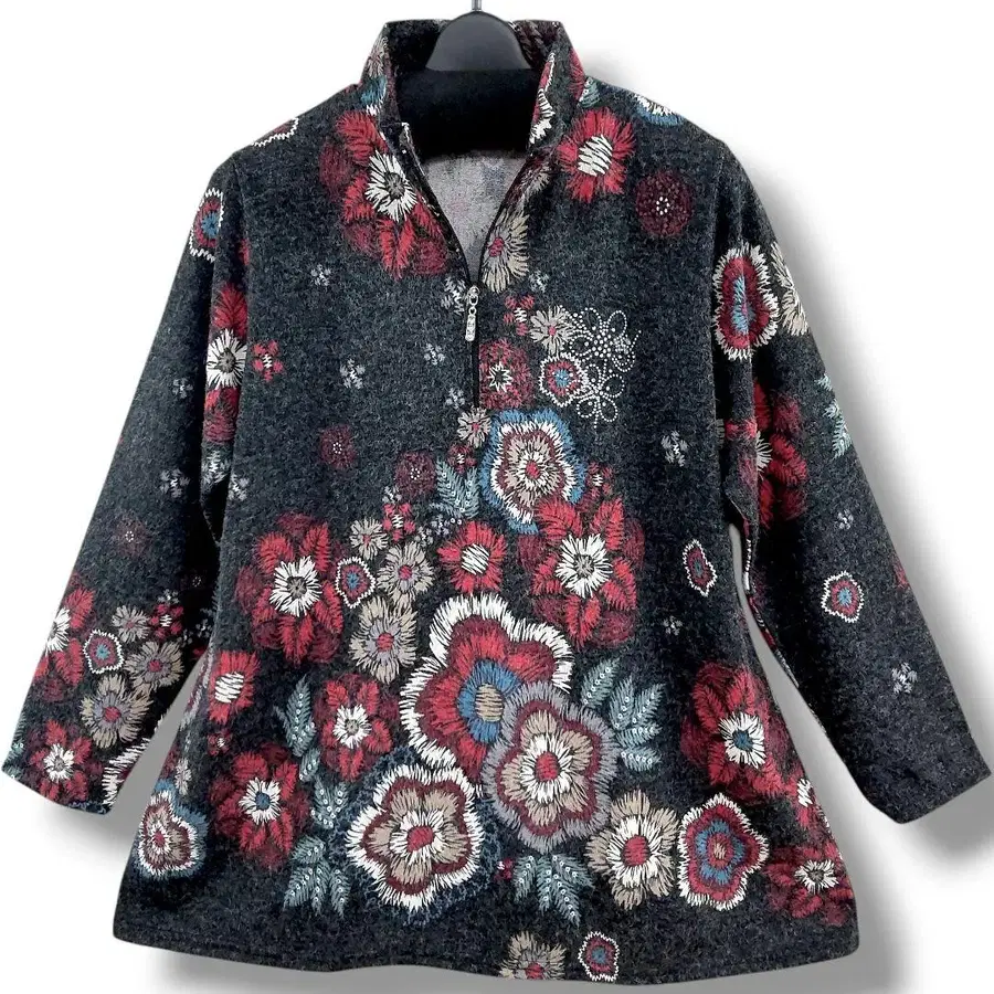 레오나르풍 하프 지퍼 튜닉 꽃무늬
