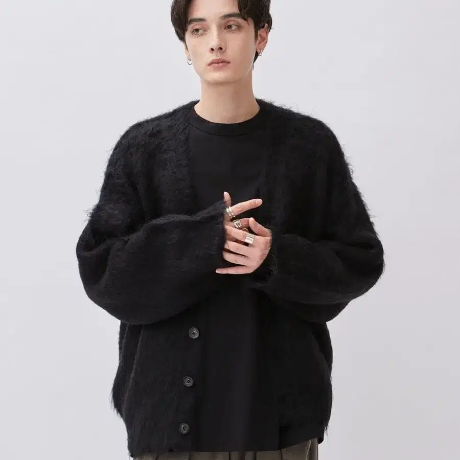 Lui's 알파카 혼방 샤기 가디건