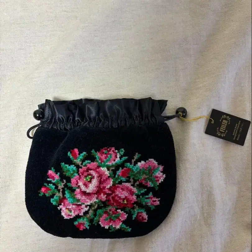 FEILER 꽃무늬 자수 블랙 복조리 파우치
