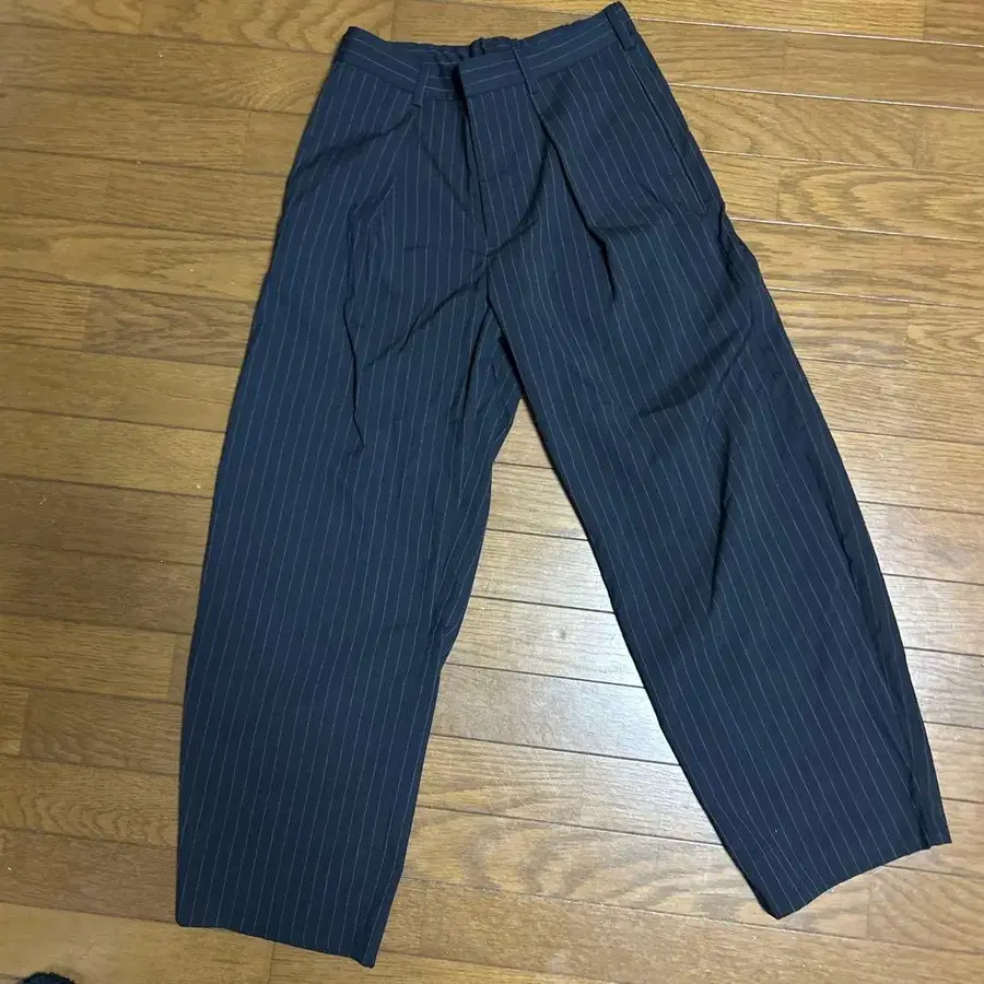 네이비 스트라이프 와이드 팬츠