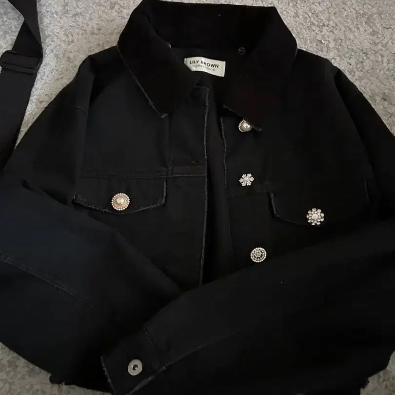 비쥬 장식 블랙 데님 자켓 릴리 브라운