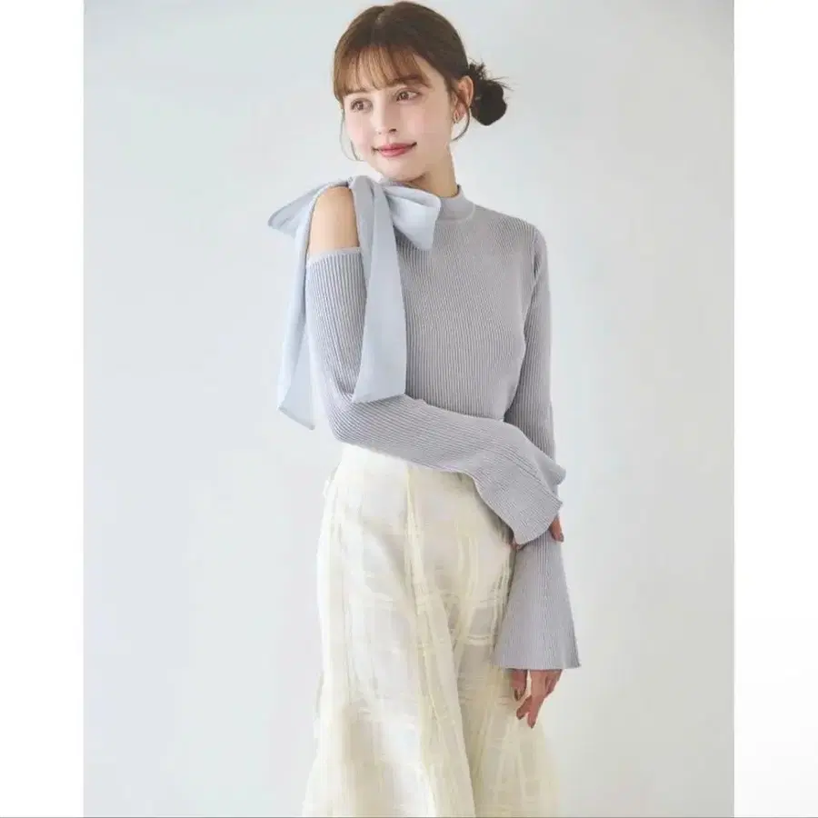 dazzlin 원숄더 리본 니트 상의 그레이 dazzlin