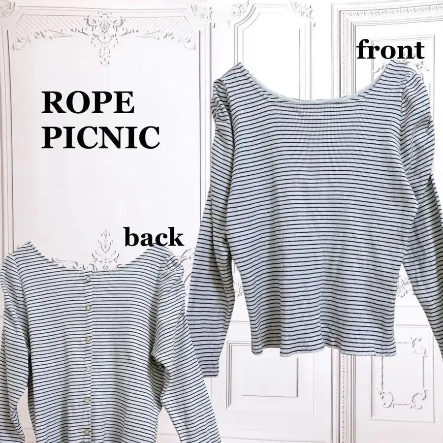 로페피크닉 리브 티셔츠 긴팔 T셔츠 [M] 블랙 화이트 보더 버튼