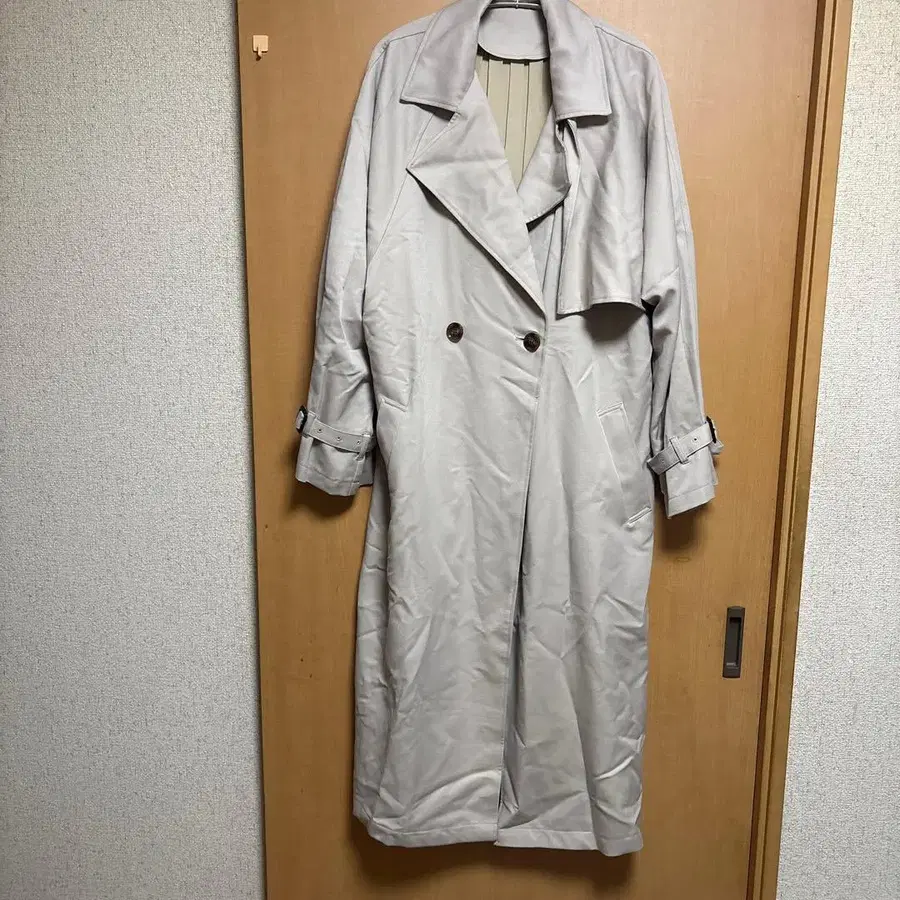 백 플리츠 트렌치코트입니다. 사이즈 M 라이트 베이지 더블 브레스트