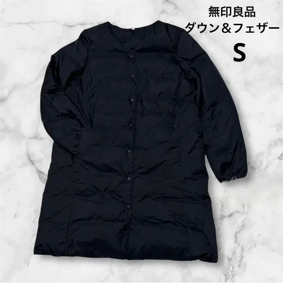 무인양품 다운&페더 노카라 다운 코트 네이비.블랙 여성용 S