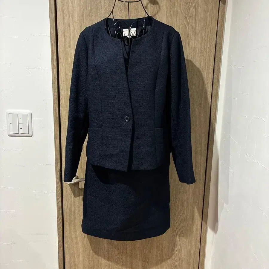 네이비 정장 세트 7부 소매 자켓과 스커트