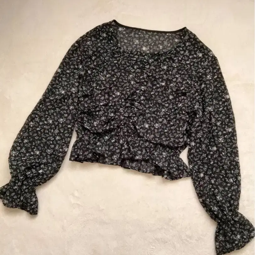 KBF 플라워 프린트 뷔스티에 블라우스 셔링 상의