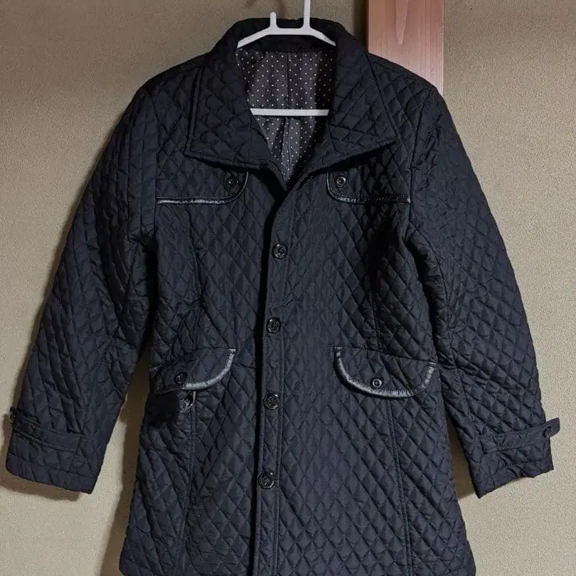 여성용 퀼팅 코트 충전솜 롱 기장 블랙 도트 안감