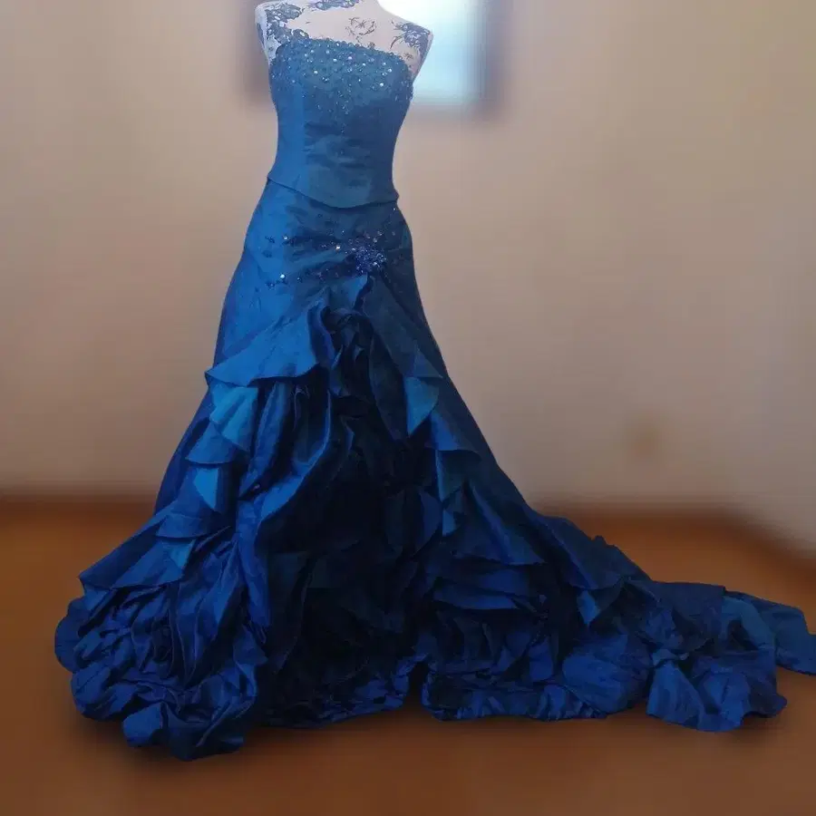커다란 장미 프릴과 비즈 장식이 돋보이는 다크 블루 색상의 스트랩리스 A라인 드레스. - 색상: 다크 블루 - 디자인: 프릴 포함 - 장식: 비즈 장식 - 스타일: 스트랩리스 - 실루엣: A라인 다른 드레스들도 많이 판매하고 있습니다. 드레스 가게에서는 몸에 맞는 세세한 사이즈 조절이 필요하다고 세일즈 멘트를 합니다. 그것은 높은 가격을 제시하고 싶기 때문입니다. 하지만 사진관 등에서는 왜 저렴하게 촬영할 수 있을까요? 사실은 프리 사이즈로도 충분하기 때문입니다. 또한, 해외 수입 드레스는 원단이 얇아서인지 스커트 아래 가랑이 라인이 비쳐 보일 수 있으니 주의가 필요합니다. 상태는 사진으로 확인해 주세요. 취미로 모았던 것이므로 세세한 부분까지 확인하지는 못했습니다. 완벽한 것을 원하시는 분께는 부적합합니다. 방문해 주셔서 감사합니다.