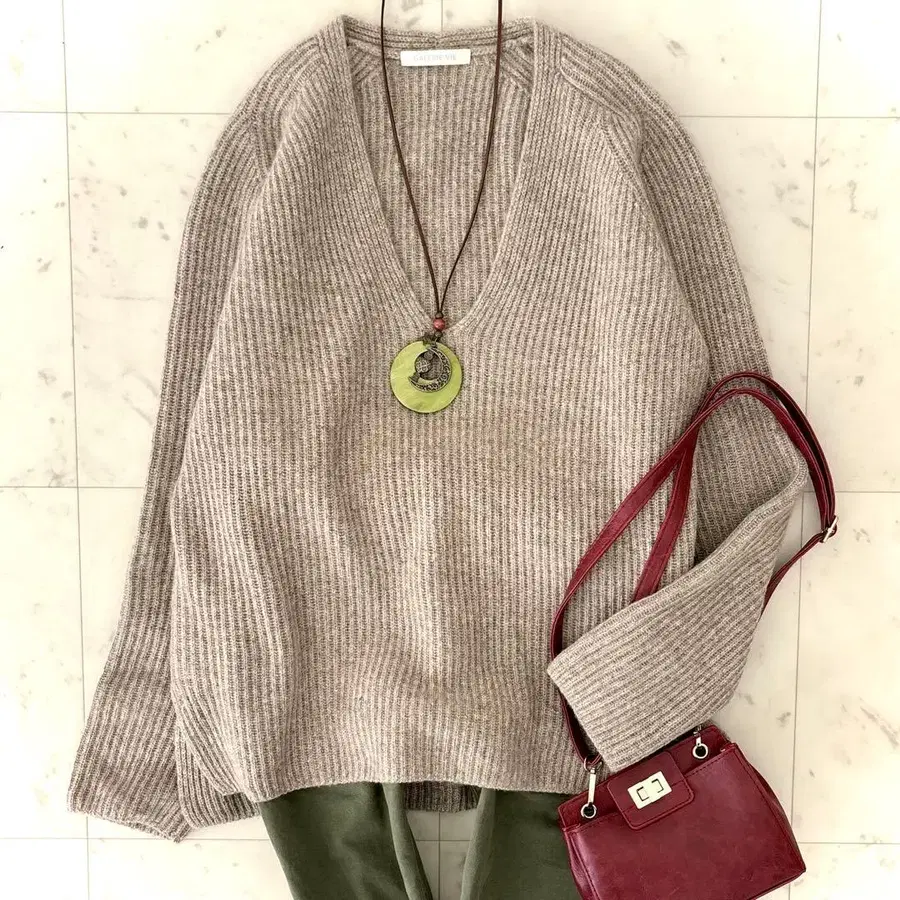 새상품급 갤러리 바이 캐시미어 100% 하찌 V넥 니트 S 톤 베이지