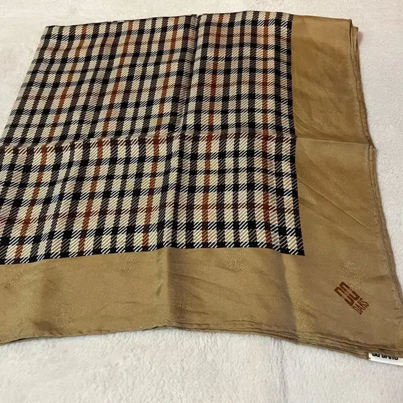 DAKS 닥스 스톨 실크 체크 무늬 브라운 대형 로고