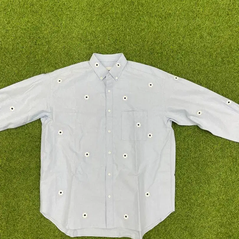 NICK GEAR 스카이블루 꽃 무늬 자수 긴팔 셔츠