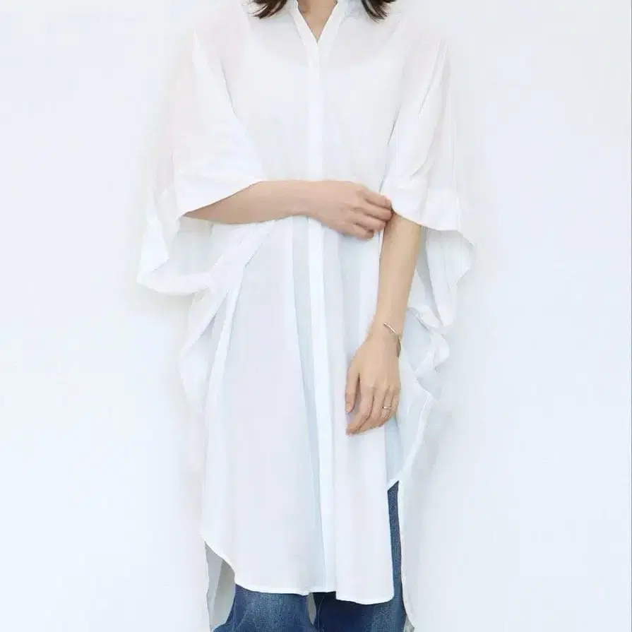 [ Jines ] 드레이프 롱 셔츠 화이트