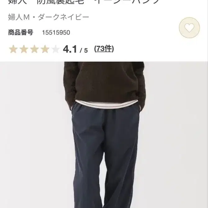 MUJI 방풍 속기모 이지 팬츠 다크 네이비