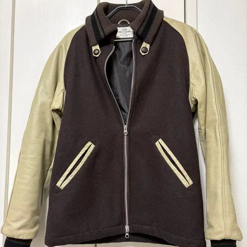 COEN 절개 소매 바시티 자켓 소가죽 M 다크 브라운 아이보리