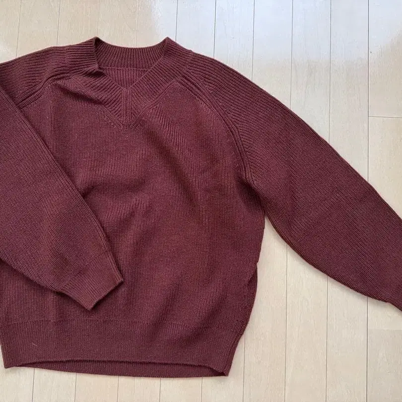 ABYTS 버건디 V넥 니트 스웨터 사이즈 1