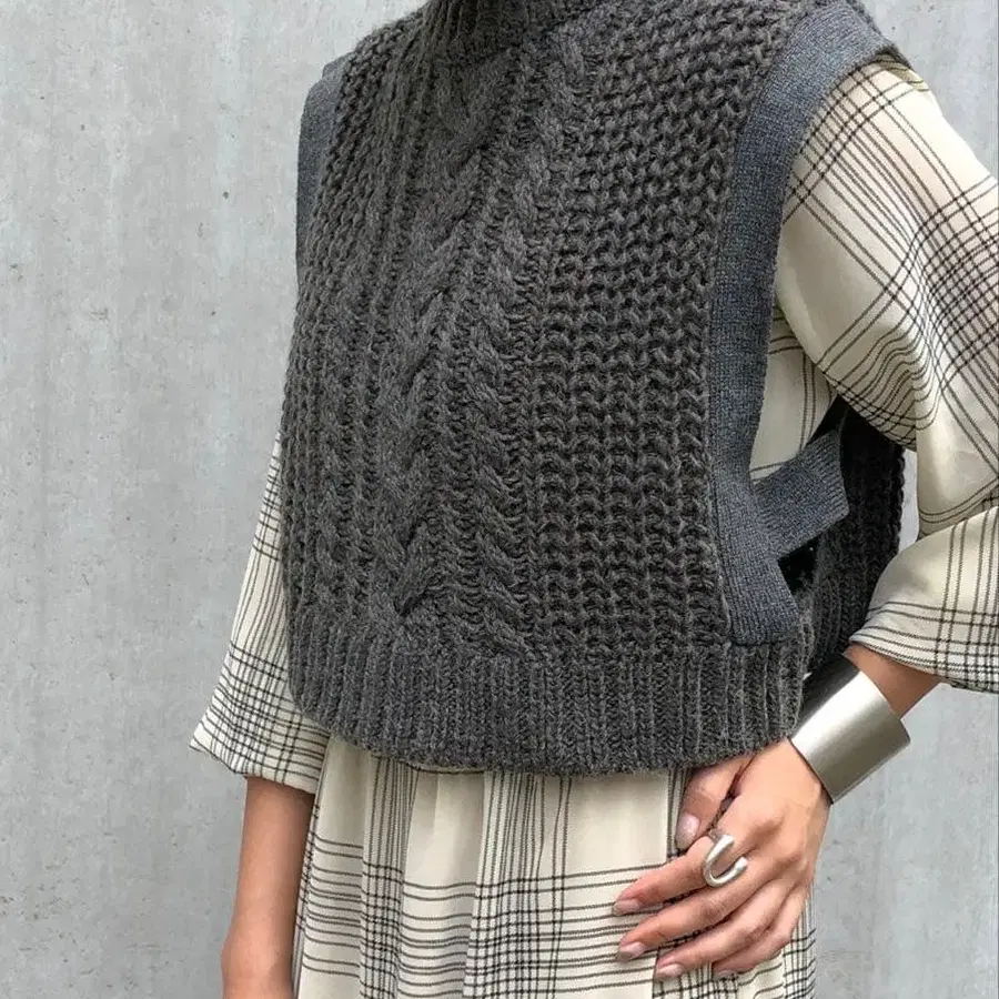 그레이 케이블 짜임 니트 베스트 프리 사이즈