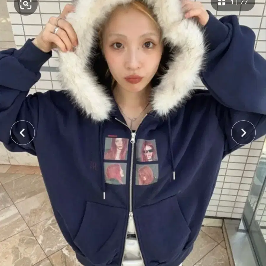 JEANASIS [ 25quee ] 가공 프린트 ZIP 후드티