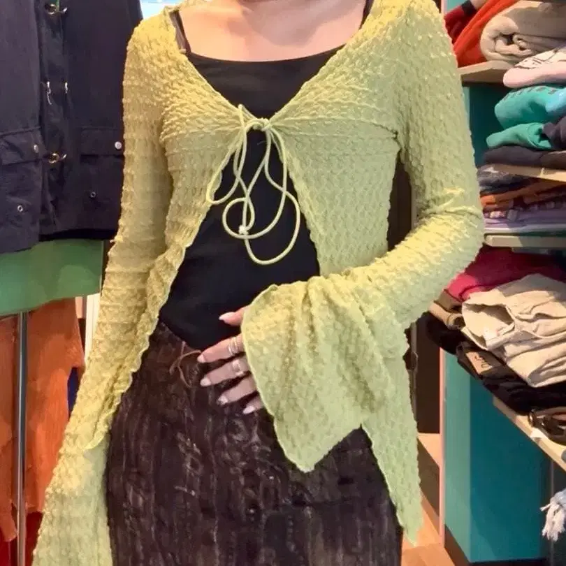 라임 그린 y2k 가디건 헤이세이 갸루 그런지 페어리 그런지