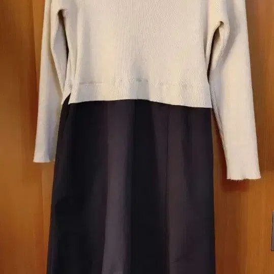 베이지 블랙 티셔츠 니트 롱 원피스 KEYUCA