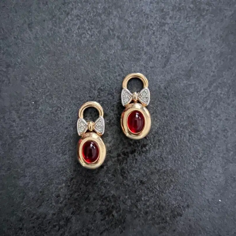AGATHA 리본 빨간색 스톤 참 2세트 골드 컬러