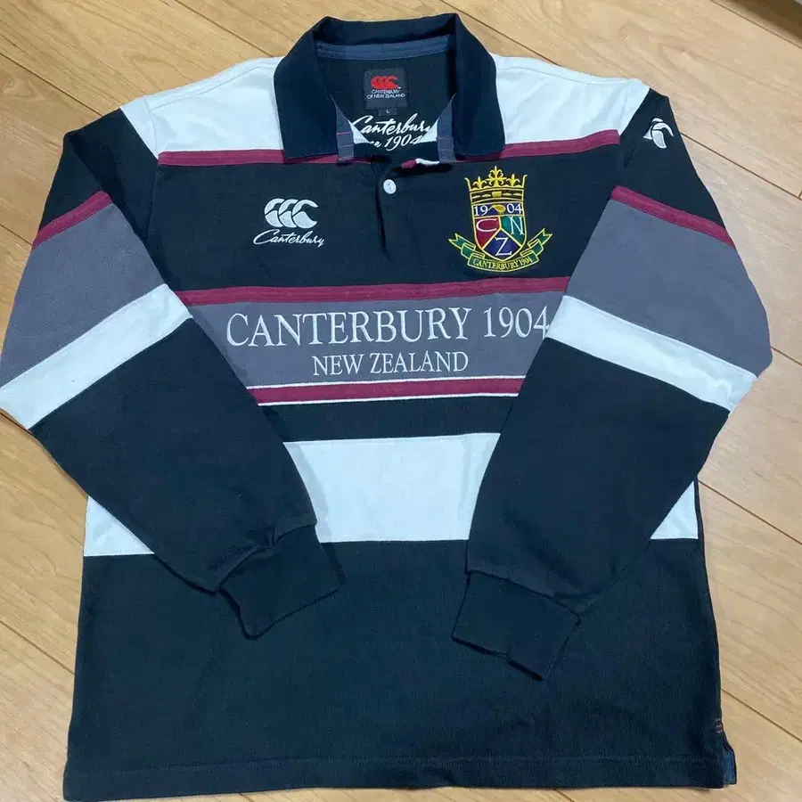 캔터베리 라거 셔츠 자수 로고 엠블럼 보더 L
