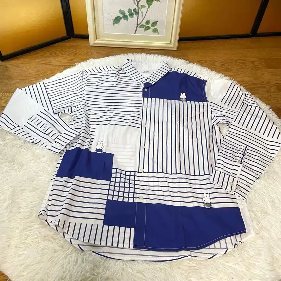 무지, 보더, 스트라이프 의류를 입은 미피와 미피 의류의 패턴에 맞춘 원단을 조합한 멋진 긴팔 셔츠