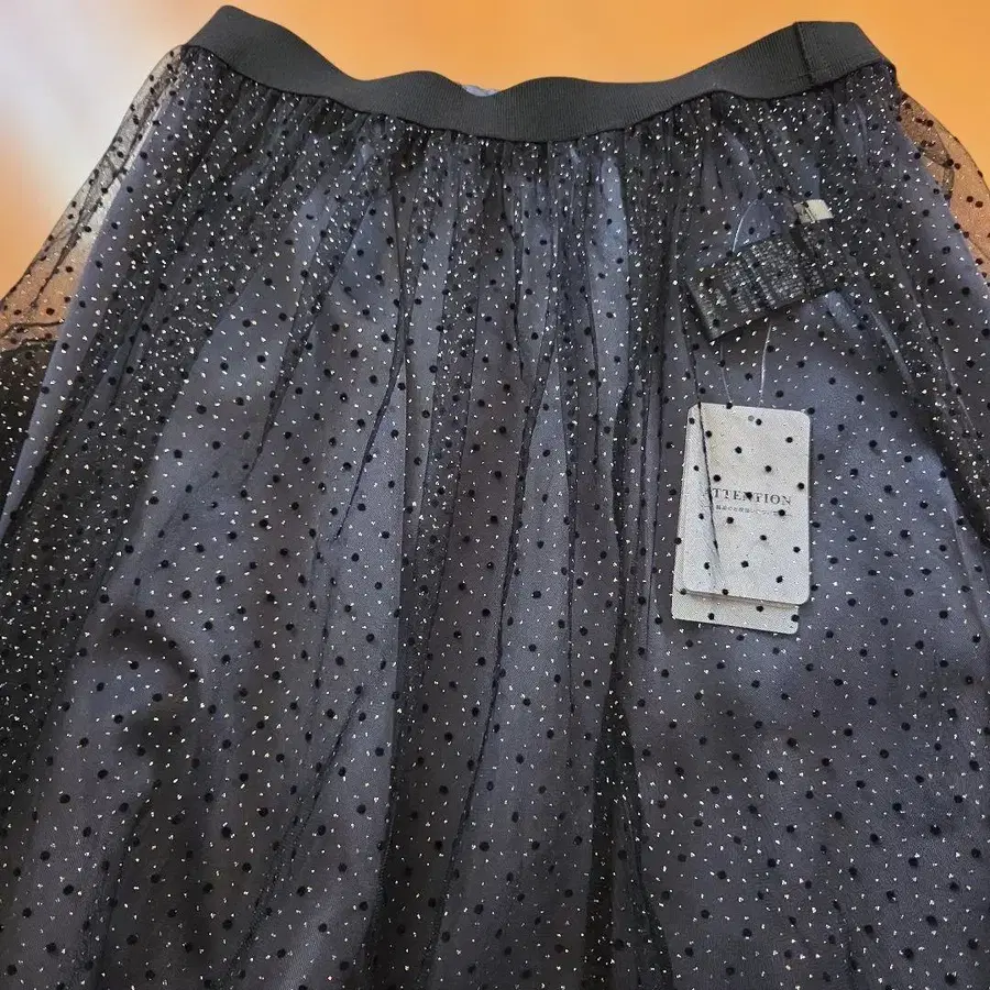 튤의 섬세한 비침에 라메와 플로키 가공된 도트를 뿌려, 화려함과 고급스러움을 겸비한 롱 스커트입니다.