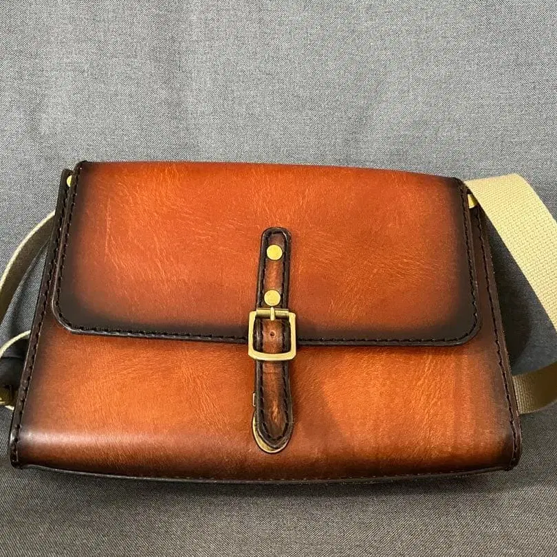 깊이 있는 브라운 컬러가 인상적인 천연 가죽 숄더백입니다.