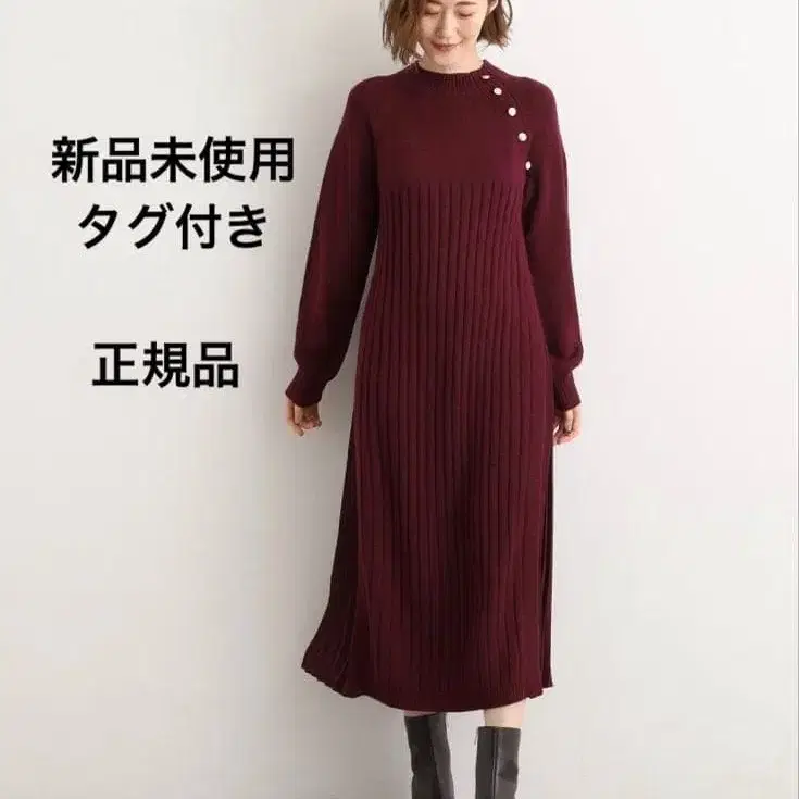 [ grove ] 배색 사이드 플리츠 니트 원피스