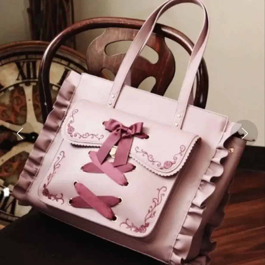 axes femme POETIQUE 레이스업 A4 토트백 핑크