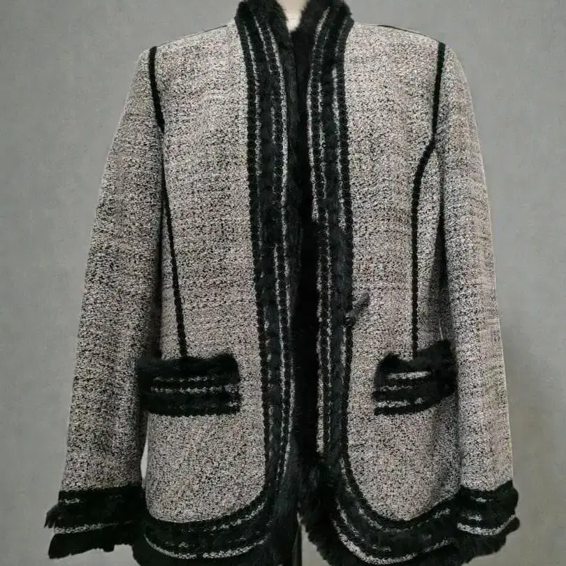 이타리야 그레이 노카라 자켓 퍼 트위드