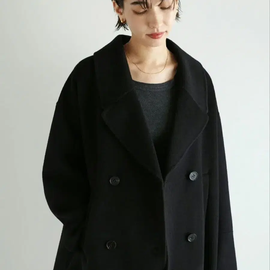 evernavy 에버네이비 리버 피코트 블랙 M 울 코트
