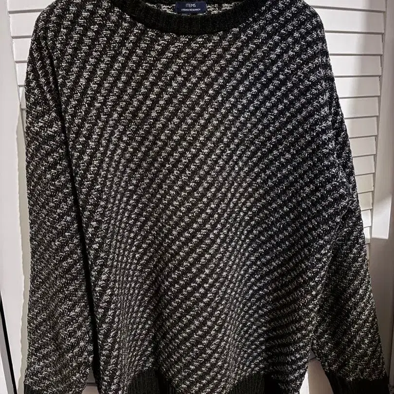 블랙과 화이트의 자카드 편직으로 된 기하학 패턴이 매우 고급스러우며, 차분하고 성숙한 분위기로 연출할 수 있습니다.