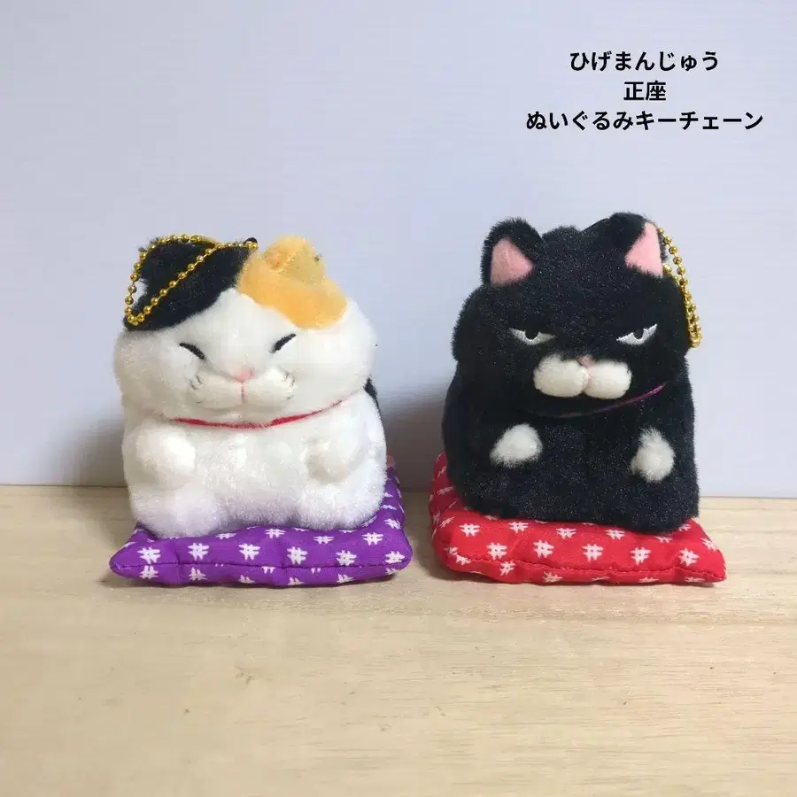 히게만주 정좌 봉제 인형 키체인 2개 세트 마스코트 방석