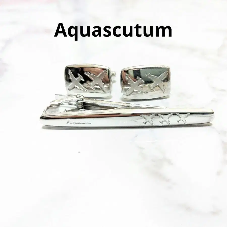 아쿠아 스큐텀 넥타이핀 커프스 세트 실버 비행기