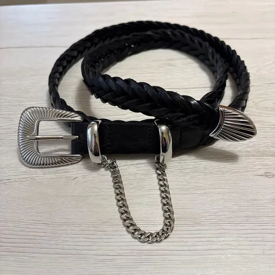 jieda 블랙 가죽 벨트 뜨개질 디자인 체인 포함