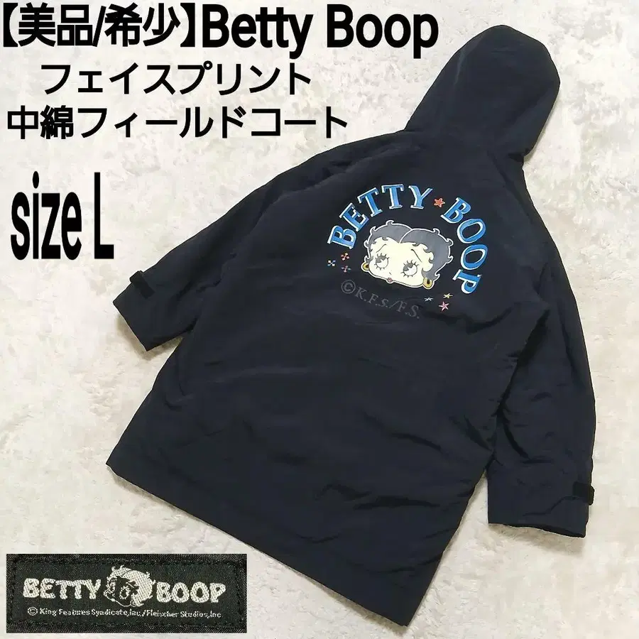 [ 새상품급/레어 ] Betty Boop 베티 부프 페이스 프린트 충전솜 필드 코트 후디드 코트 블랙입니다 ♪