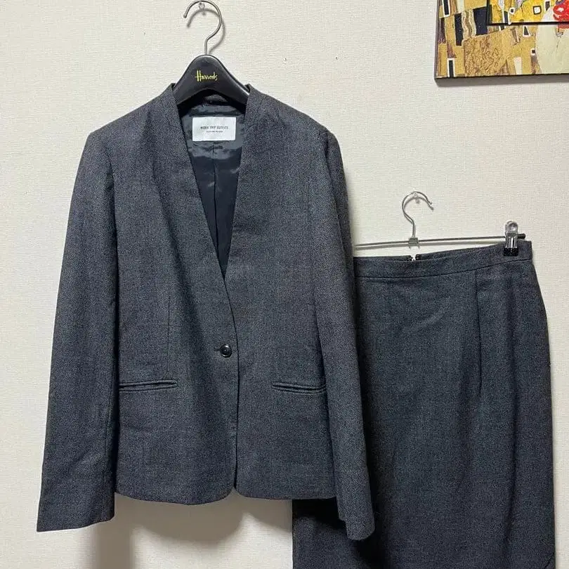 새상품급 워크립 아웃 그린 라벨 노카라 자켓 스커트 셋업