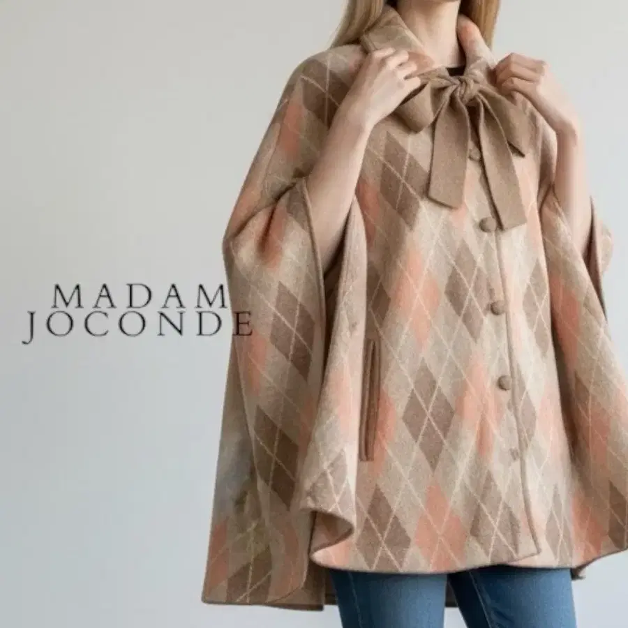 606 Jocomade 캐시미어 혼방 리본 포함 아가일 무늬 케이프 코트
