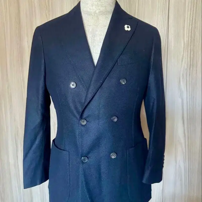 입체감이 있는 짜임의 가을/겨울용 울 소재를 사용한 더블 자켓입니다.