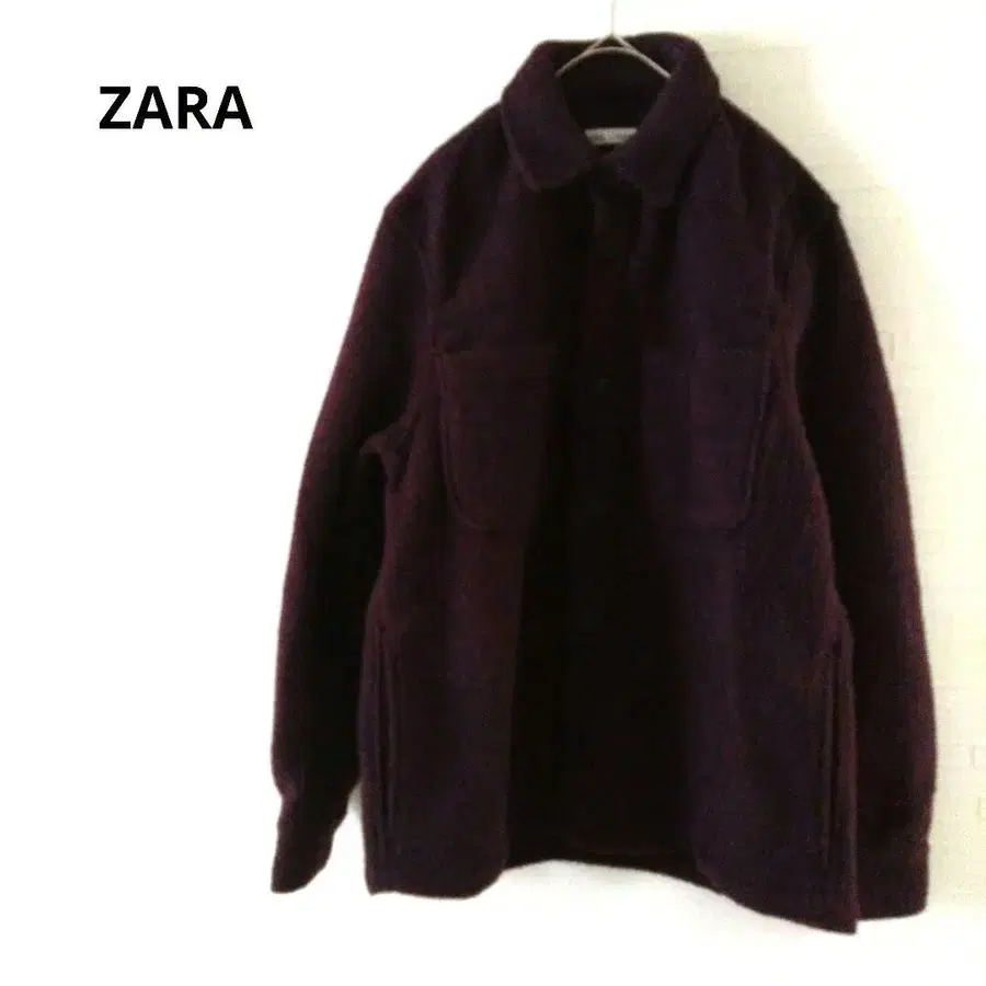 플리스 소재의 퍼플 셔츠 자켓, 포켓 2개 부착.