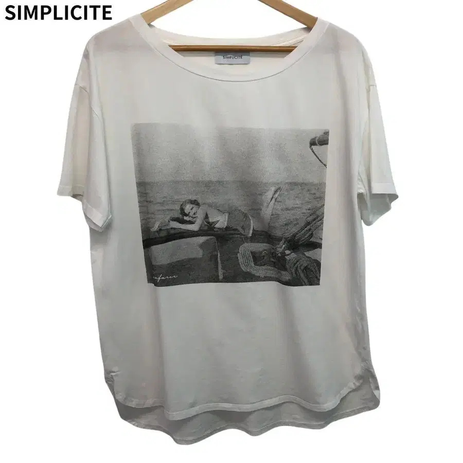 심플리시떼 포토 프린트 여성용 화이트 반팔 코튼 T셔츠