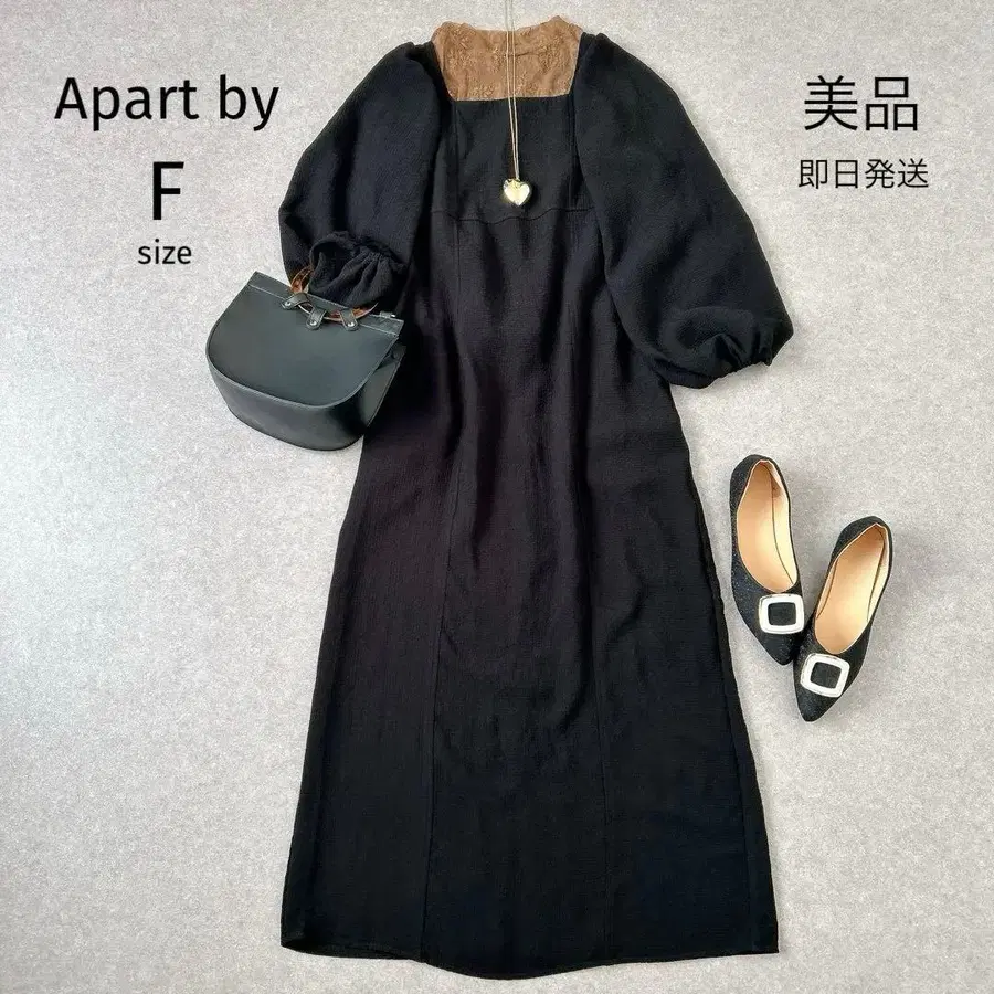 새상품급 Apart by 블랙 롱 원피스 퍼프 소매 A라인 고급 슬림