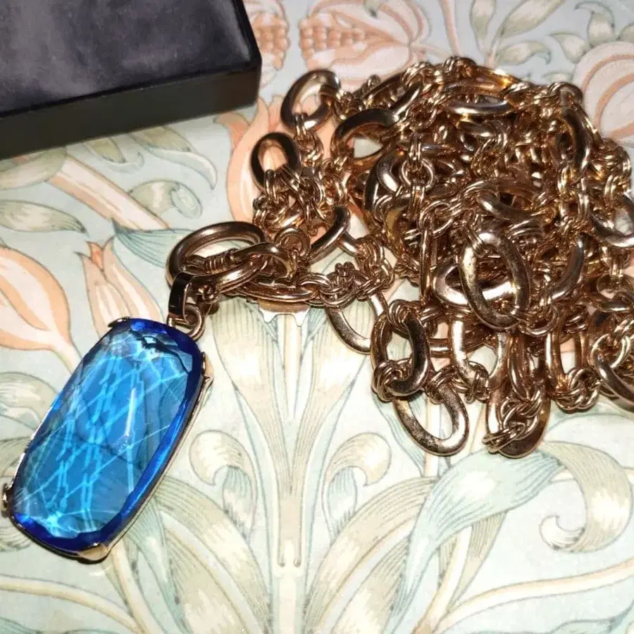 AGATHA 아가타 블루 골드 롱 목걸이 각인 있음