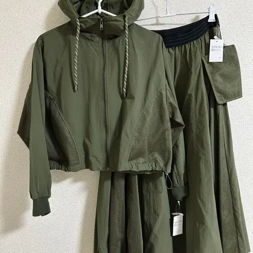 택 포함 새상품 비비안 스포츠 후드 부착 지퍼 블루종 맥시 길이 스커트
