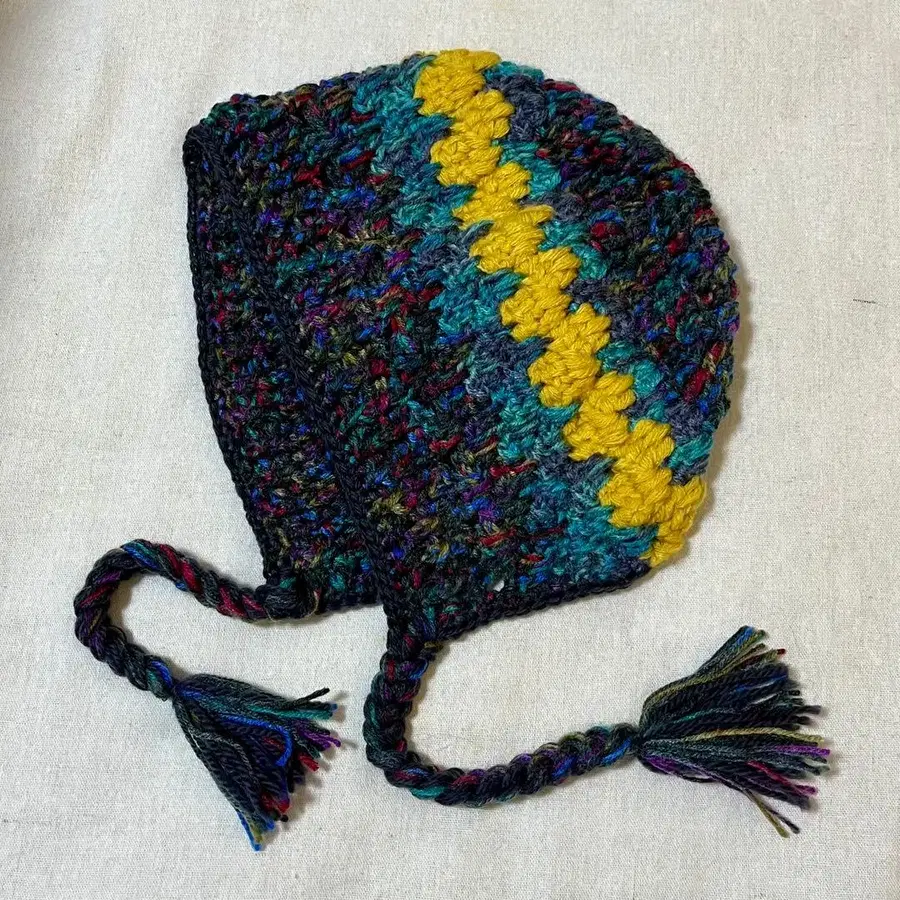핸드메이드 손뜨개질 니트 모자 바부슈카 보닛 컬러풀 레트로