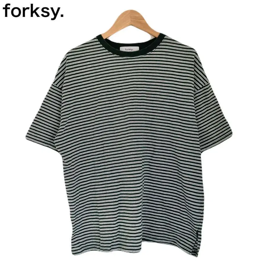 폴크시 보더 그린 여성용 반팔 둥근넥 T셔츠 코튼