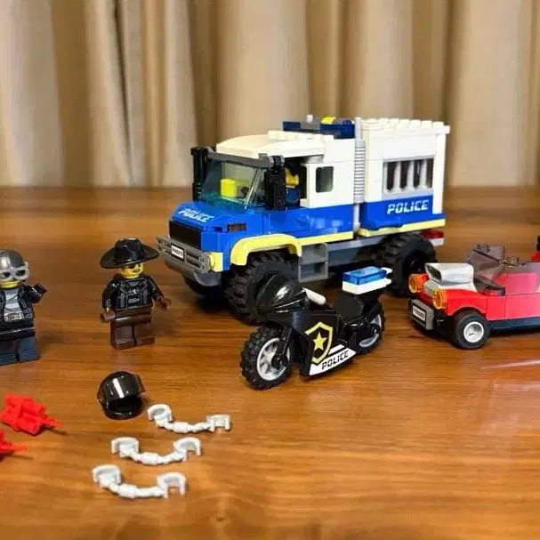 - 부속품: 미니 피규어 3개, 바이크, 빨간색 자동차, 수갑 부품
